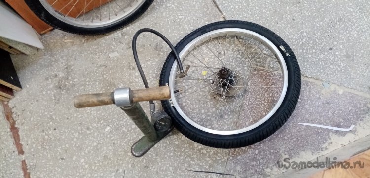 Достаю новую камеру подкачиваю, проверяю. Все в норме, можно устанавливать на колесо. Готово заднее.