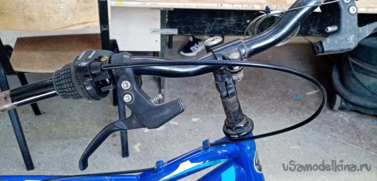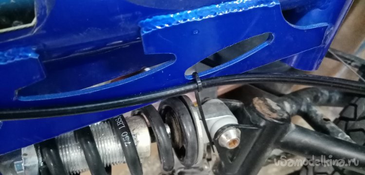 Провел управление на задний переключатель скоростей. Потом нужно еще закрепить на раме в районе амортизатора. Наверное, при помощи стяжек.