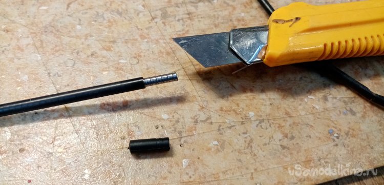 Устанавливаю наконечники. Не подходят, меньше внутренний диаметр. Срезаю внешнюю пластиковую, защитную оболочку и по новой примериваю наконечник.