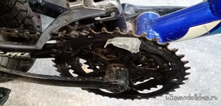 Закрепляю болтающиеся тросики на раме при помощи стяжек, чтобы не задевали ноги при педалировании. Заодно снимаю остатки пластиковой защиты с большой звездочки.