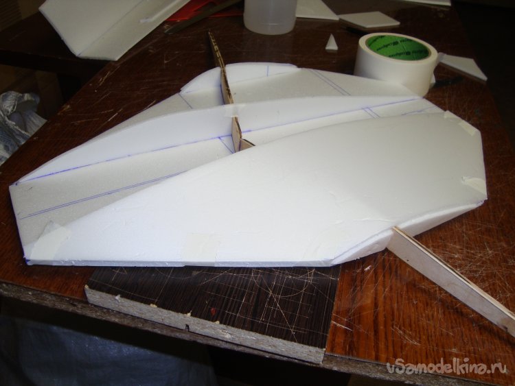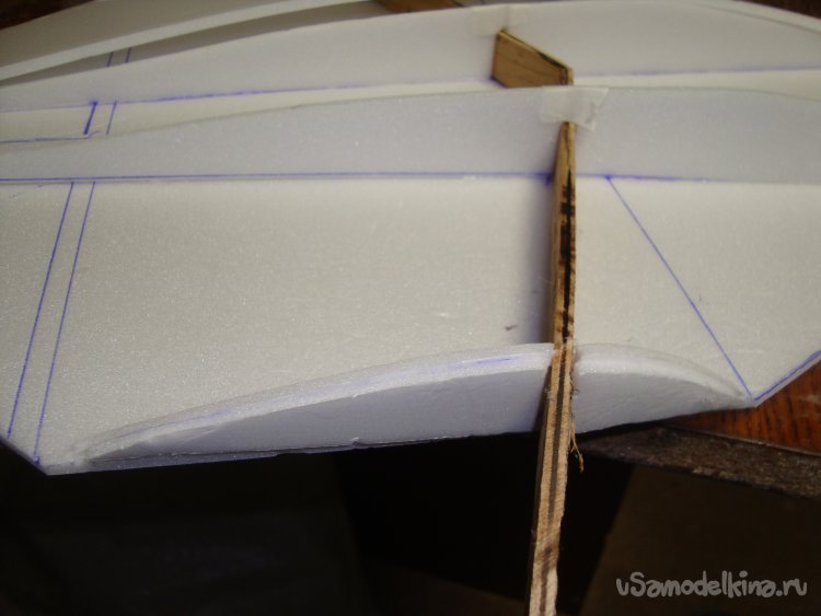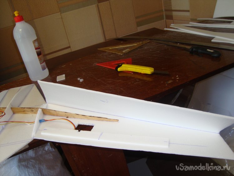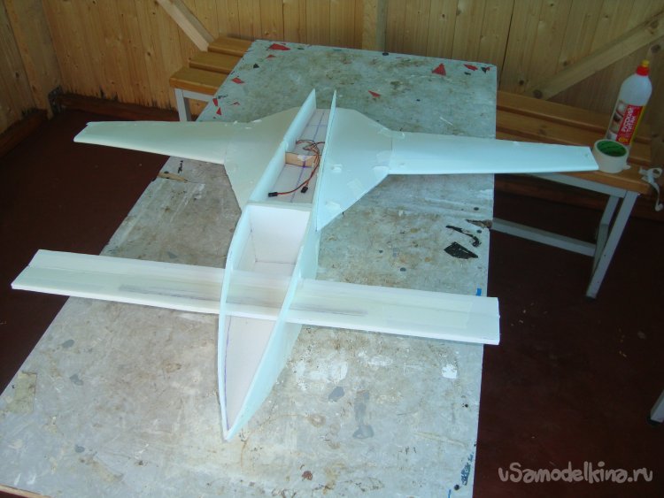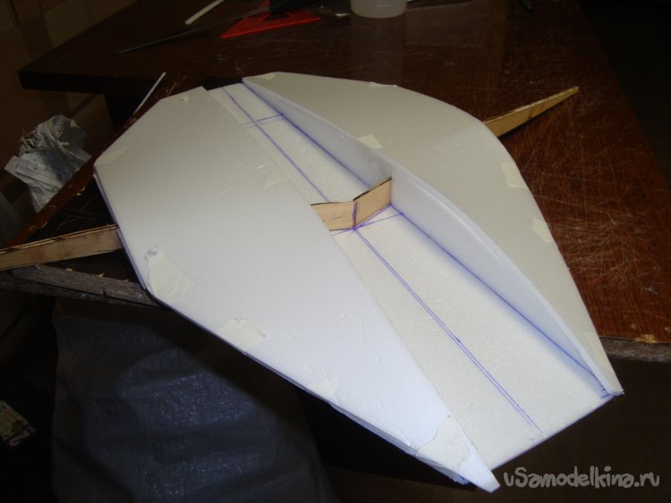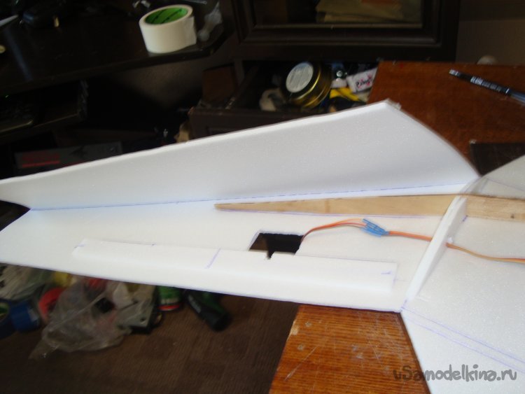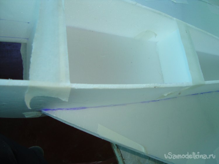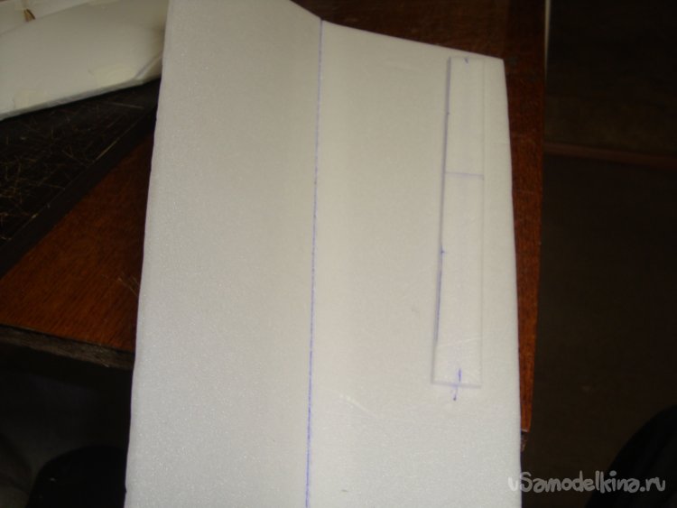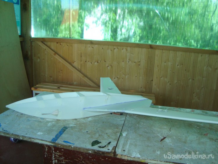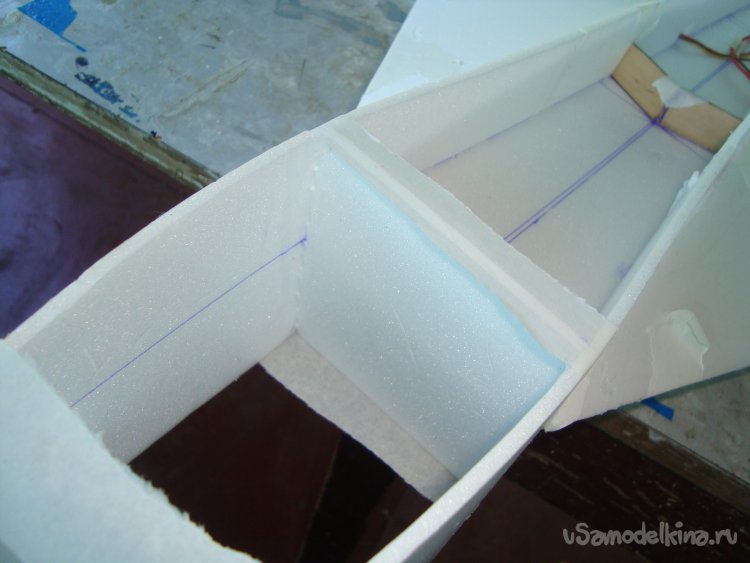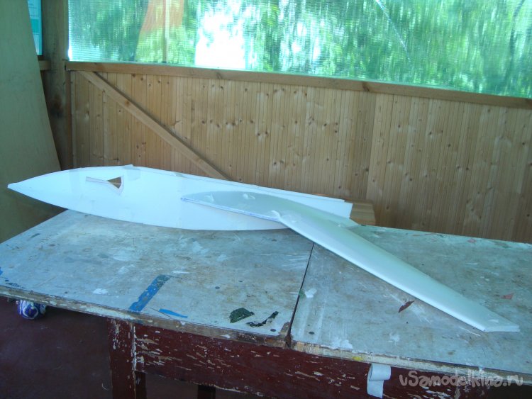 Прорезал места , куда будет монтироваться центральная секция крыла и отверстие для руля высоты.