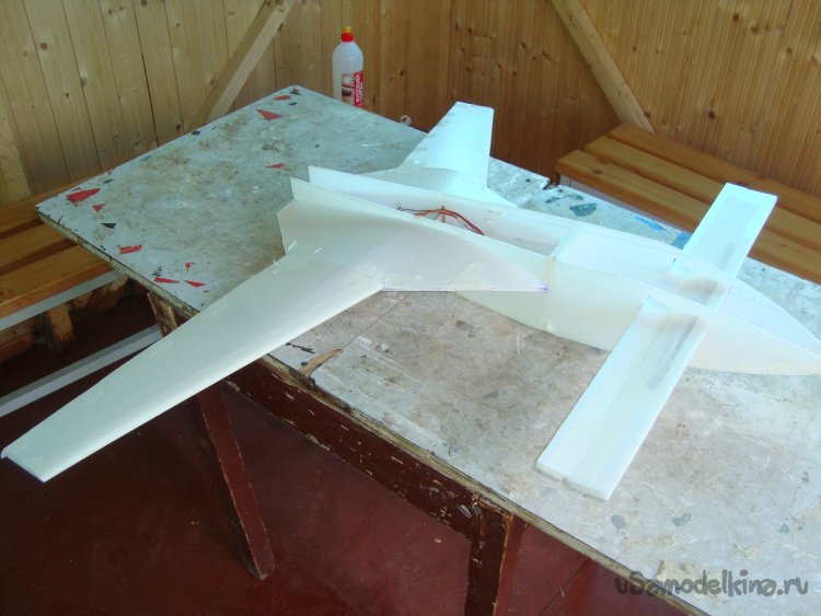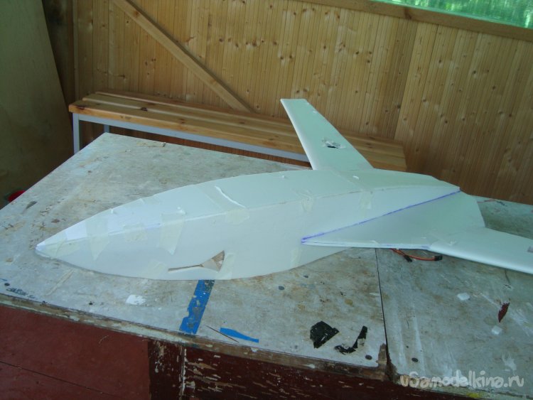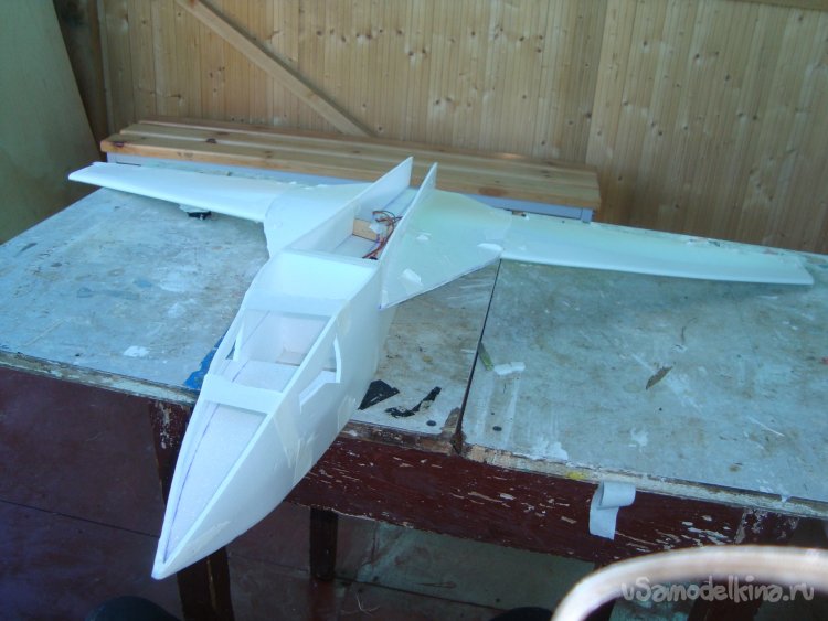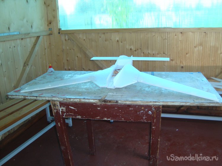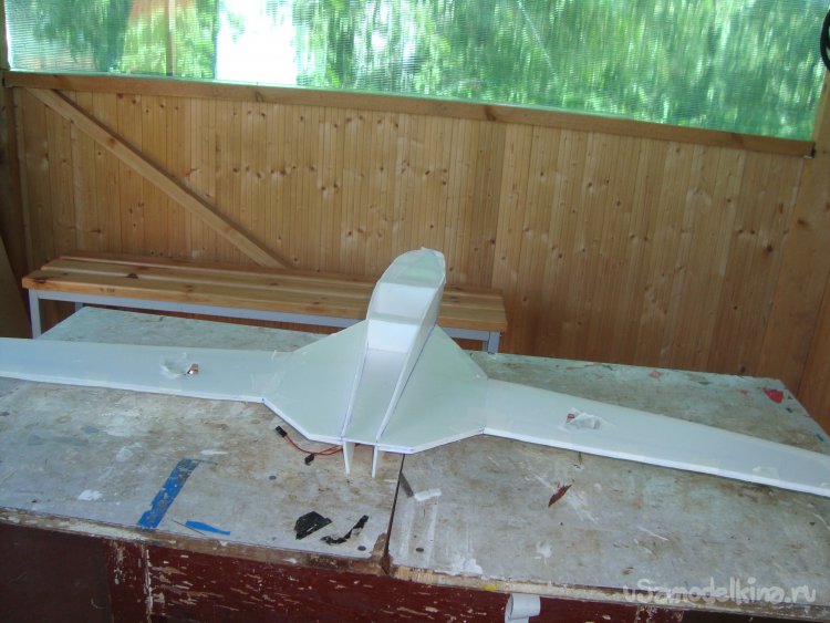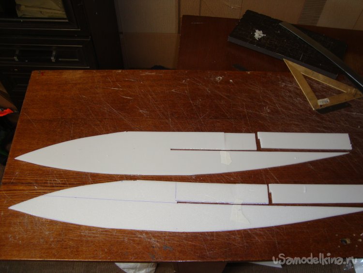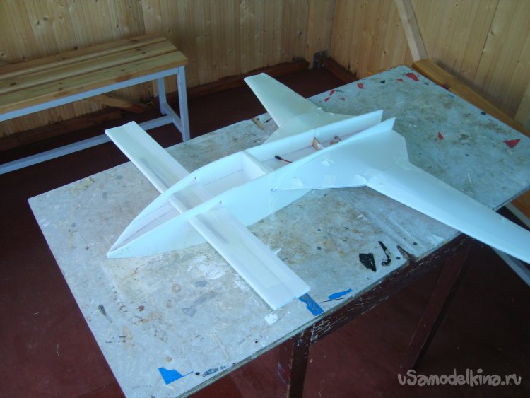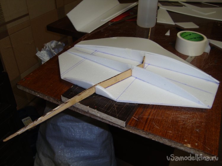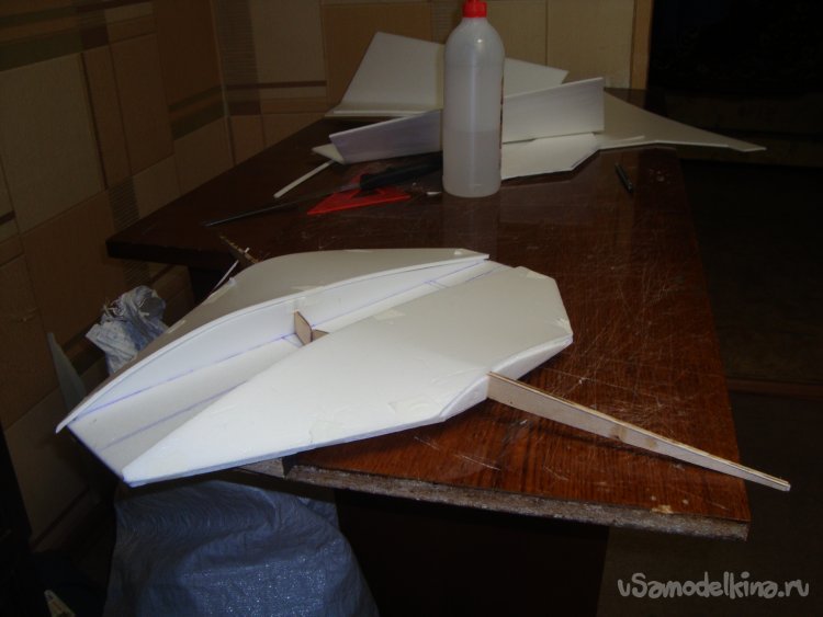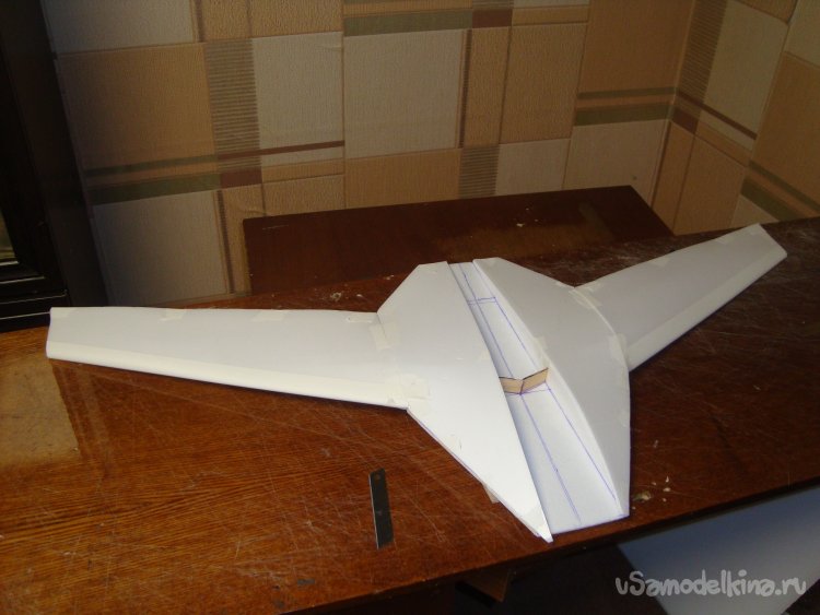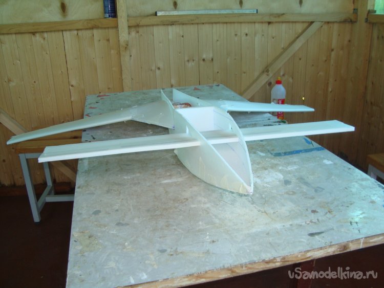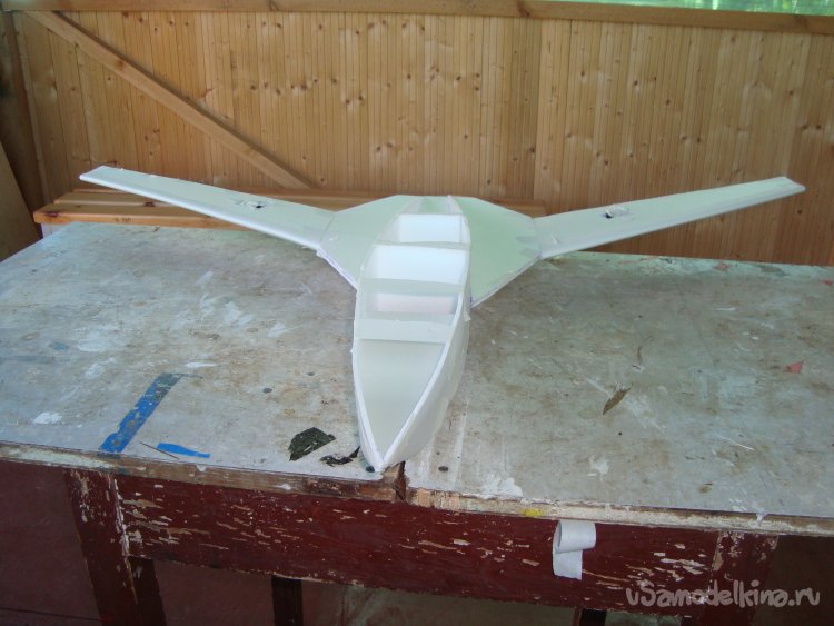 Прорезал места , куда будет монтироваться центральная секция крыла и отверстие для руля высоты.