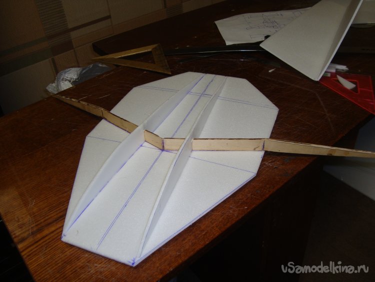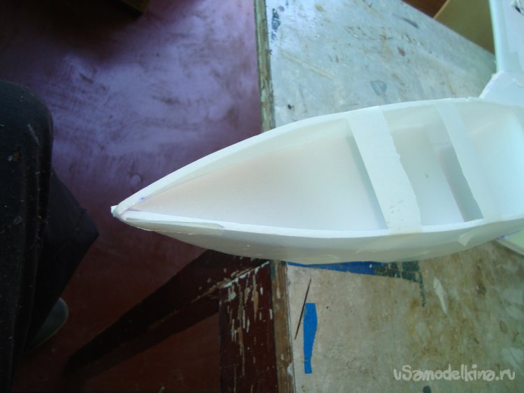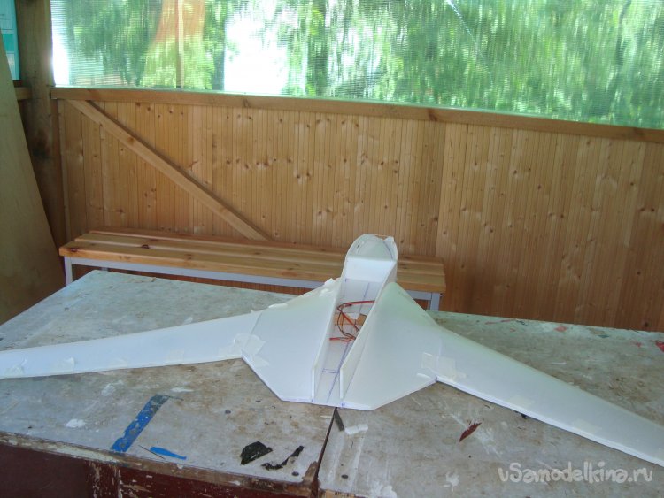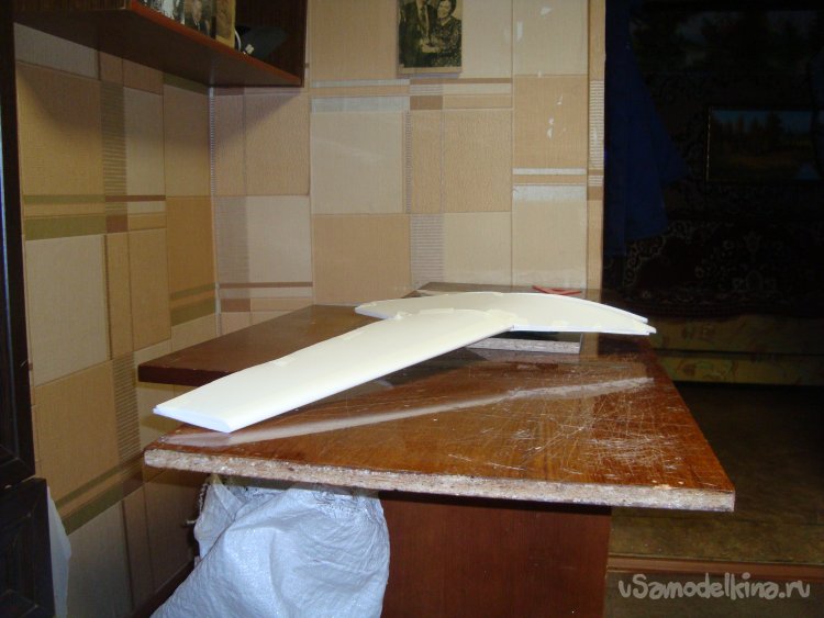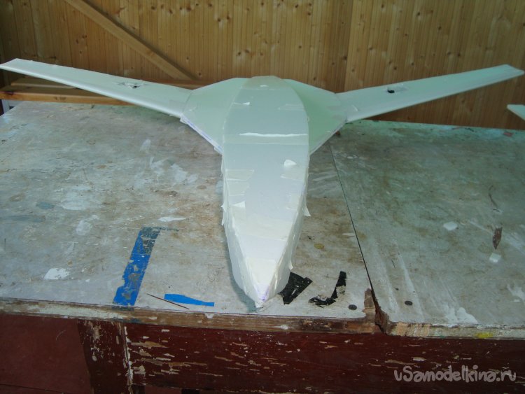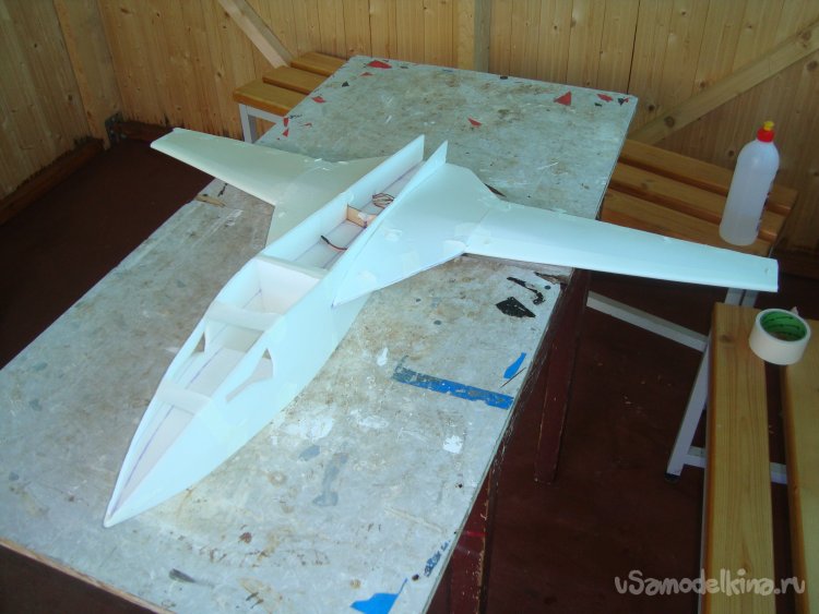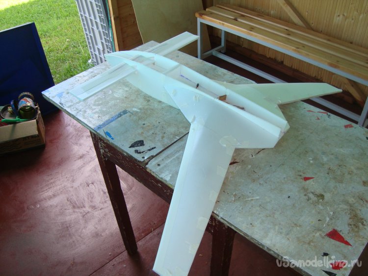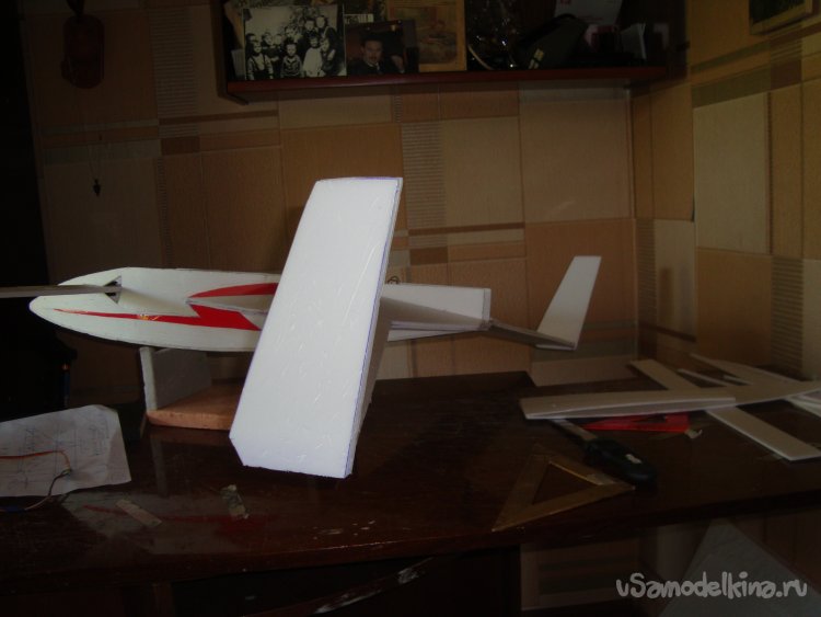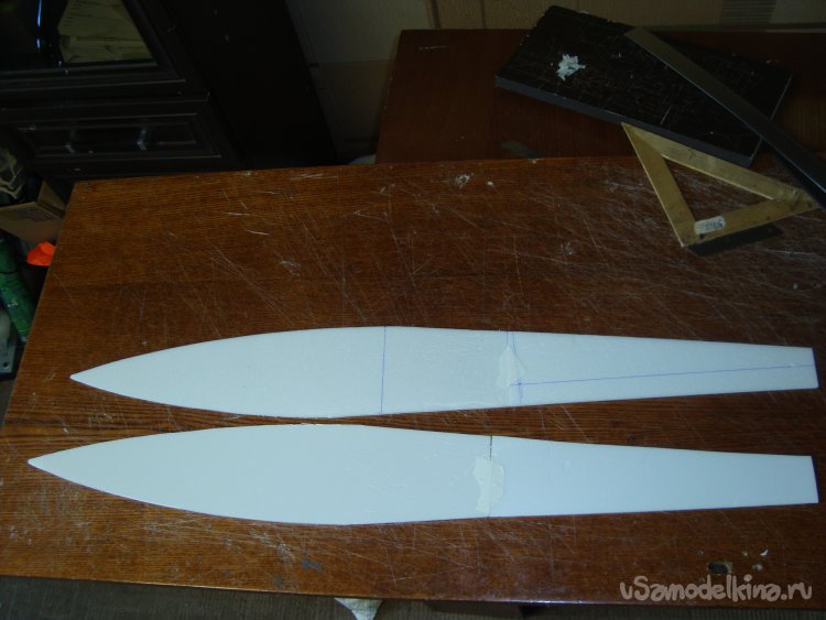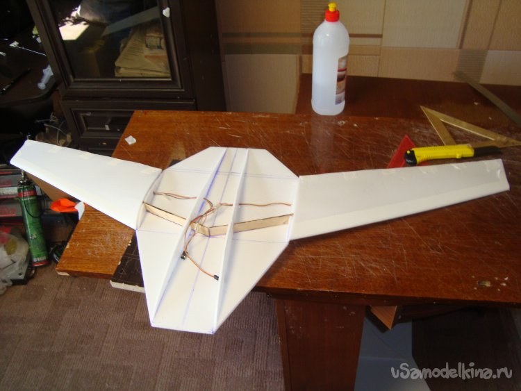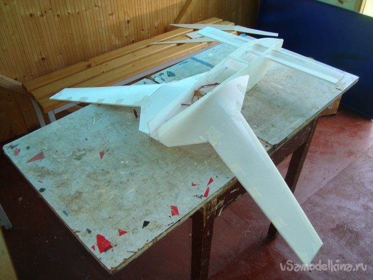 Прорезал места , куда будет монтироваться центральная секция крыла и отверстие для руля высоты.