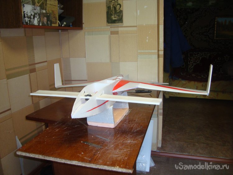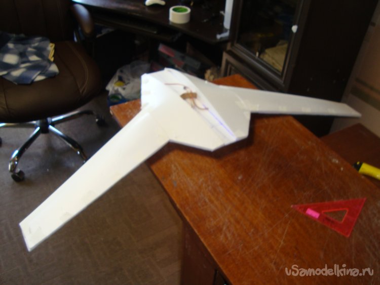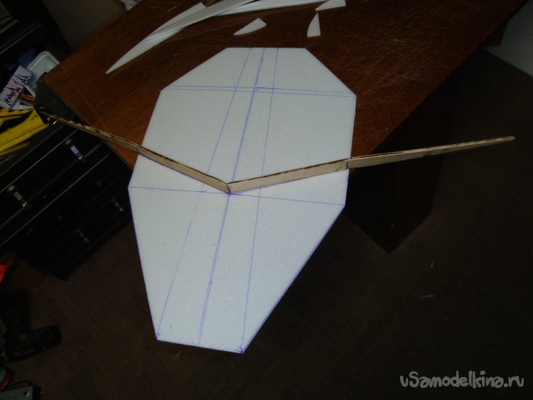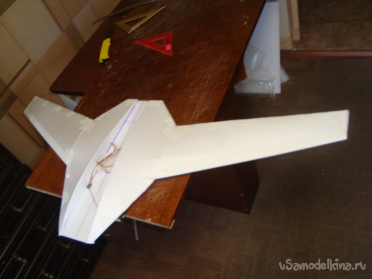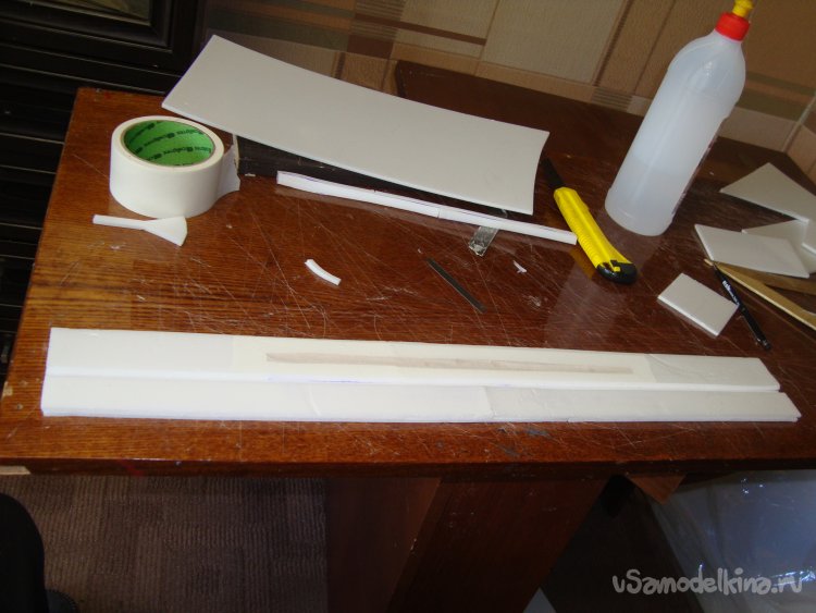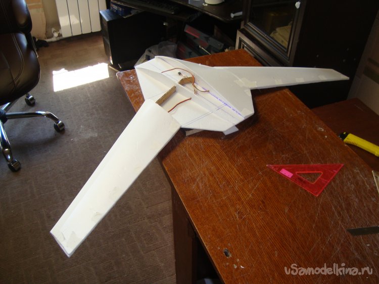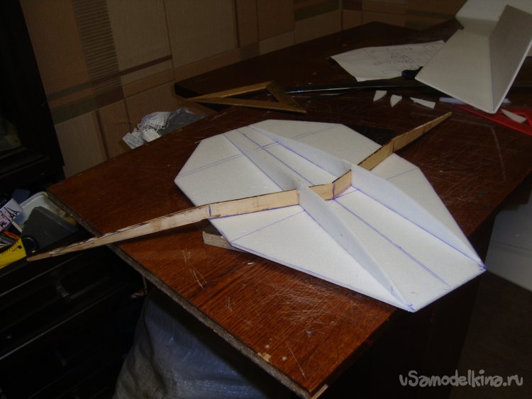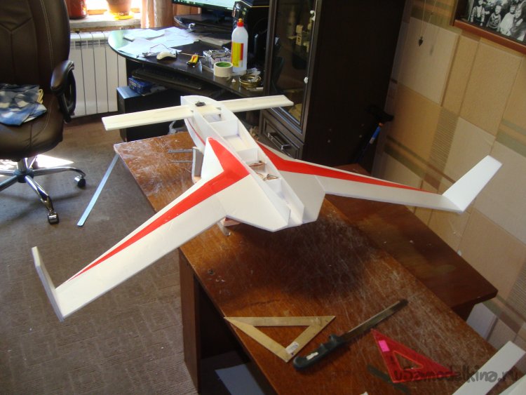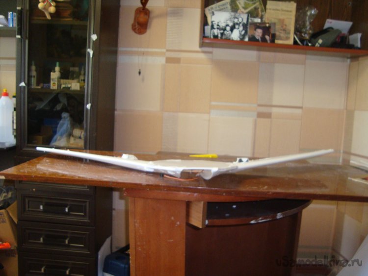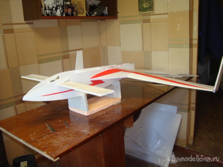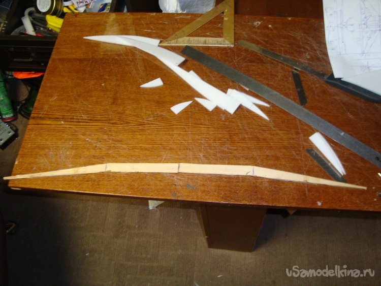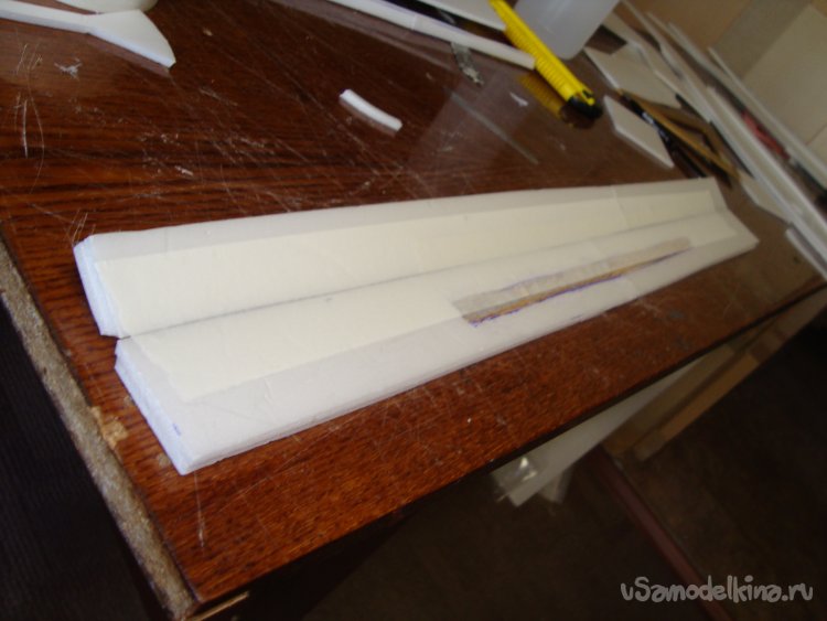 Прорезал места , куда будет монтироваться центральная секция крыла и отверстие для руля высоты.