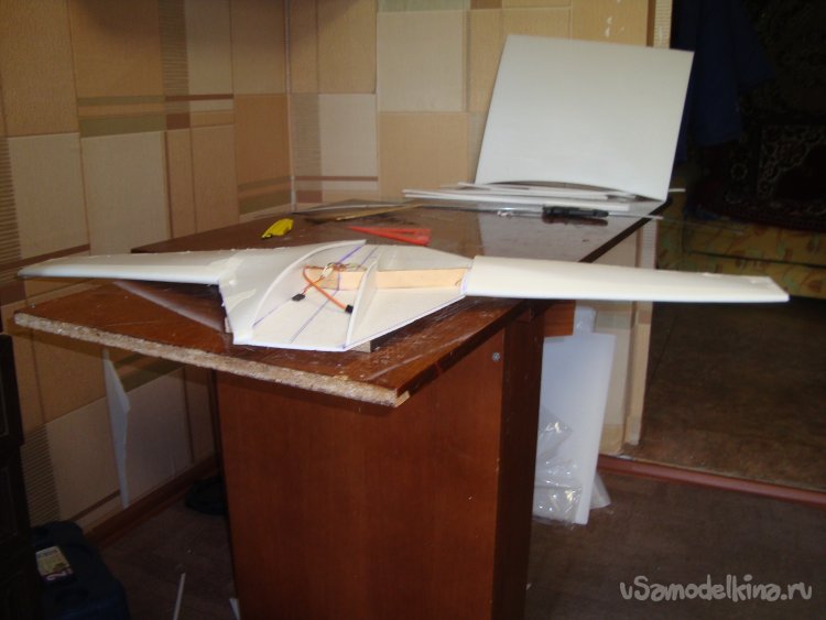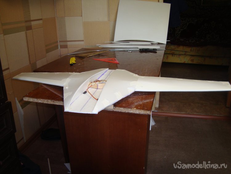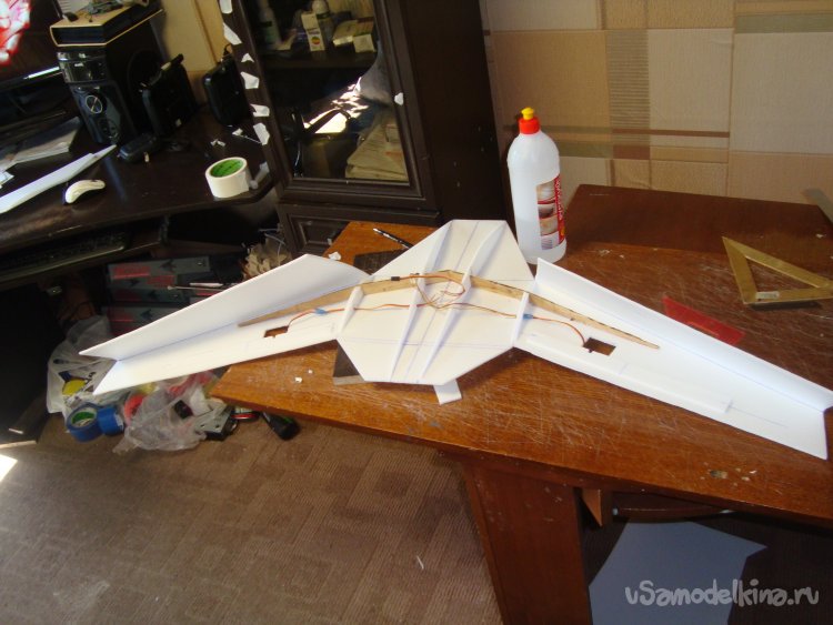 Вклеил сервомашинки на элероны.