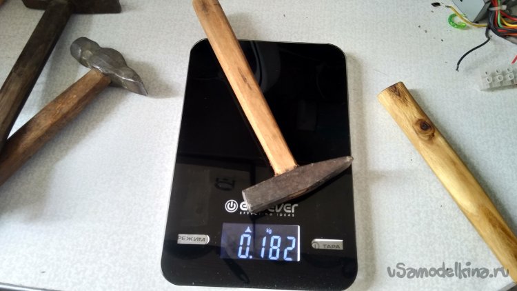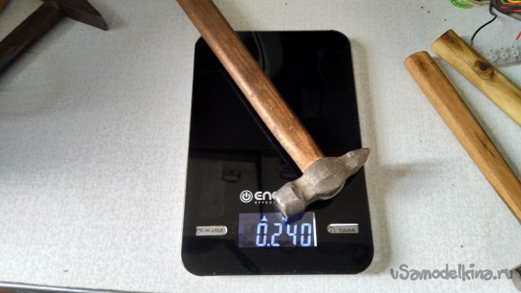 Готово. 75 граммов тело молотка, 39 граммов рукоятка. Длинна 210 миллиметров.
