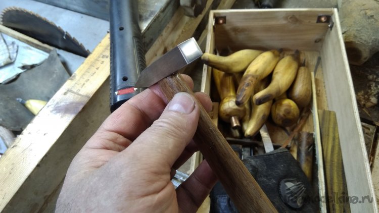 Внятного разъяснения какая должна быть рукоятка для работ по инкрустации дерева металлом не нашлось. Поэтому делал под свою руку и руководствуясь опытом тульских мастеров по всечке металла в металл. Приёмы работы слегка схожи, инструменты тоже могут быть применены к дереву, хоть и со своими тонкостями.