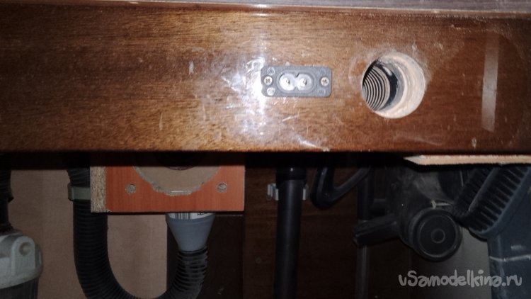 ... а выходит она наружную сторону шкафа, где к ней подключается рабочий шланг.