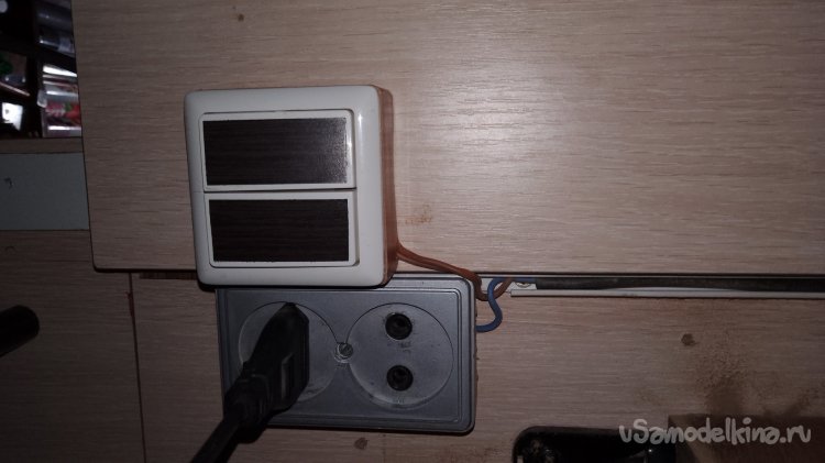 ...далее по кабель каналу к двойнику установленному с обратной стороны стола, который в свою очередь включается посредством выключателя.