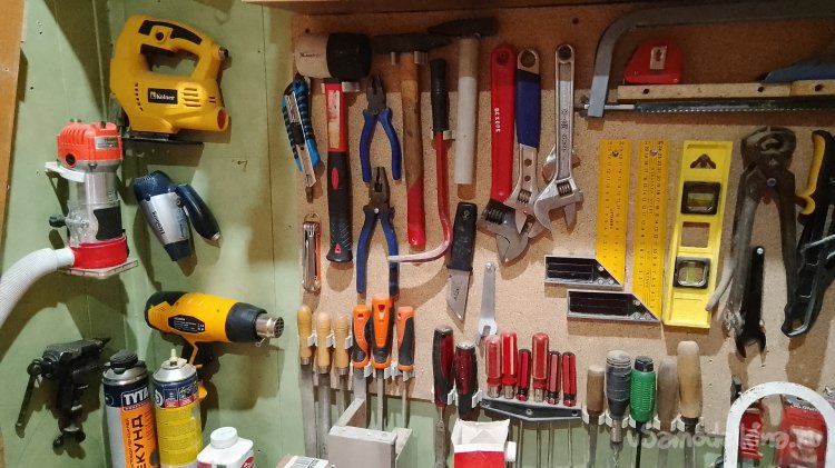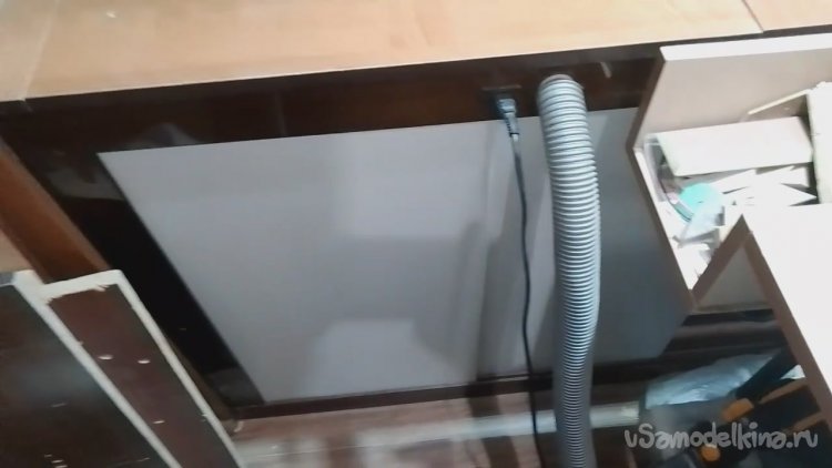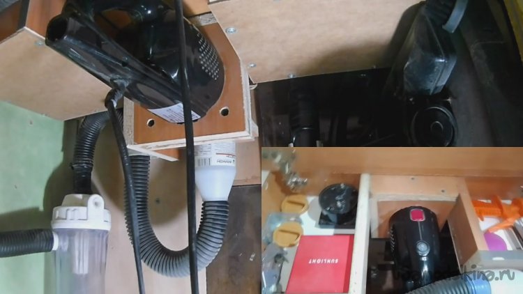 Дрель, шуруповёрты, пила, коронки, свёрла, конфирматы, саморезы, клей, напильники по дереву, дренажная труба, отводы 40/90, манжеты резиновые 50/40 мм, пластиковые трубки, пылесос, выключатель, бытовой провод подключения, разъём 220в, розетка, колба от фильтра воды, банка 5 литров, ДСП, клипсы для труб, шланг от старого пылесоса.