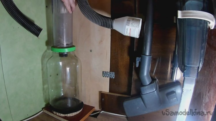 На банку примастырил наш циклонный фильтр и собрал всю конструкцию, как было рассказано и показано выше в шаге №3. Поэтому только картинки без букв!)