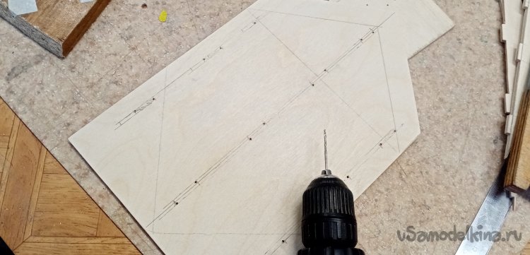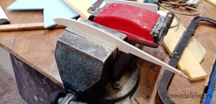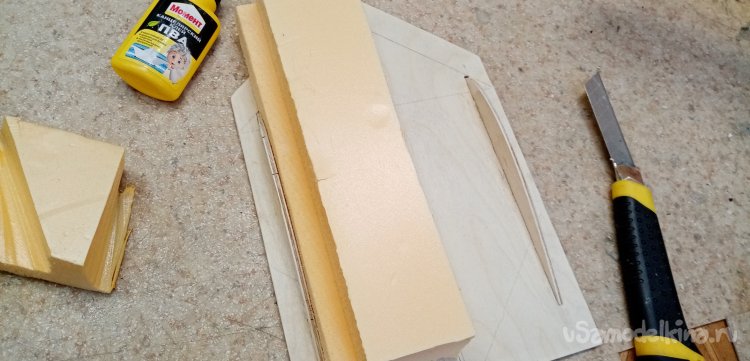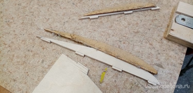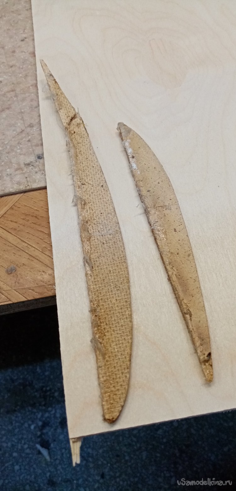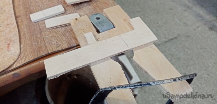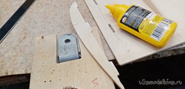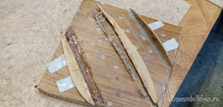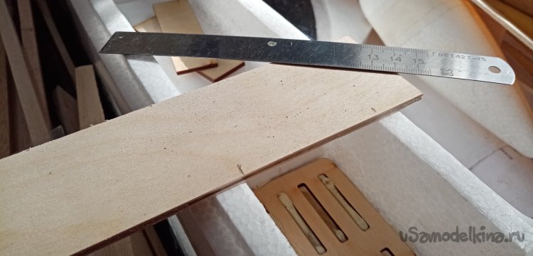 Затем промеряю нужные размеры. Выпиливаю из фруктовой фанеры нужные полоски коробочки. Примеряю все по месту, вырезаю облегчения и вклеиваю внутрь фюзеляжа на клее ПУР 501.
