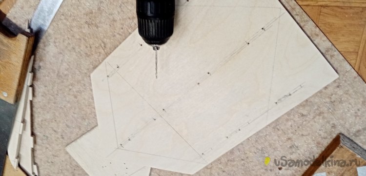 Основание готово нужно установить вертикальные шаблоны. Закрепляю в отверстия при помощи клея ПВА.