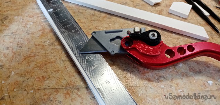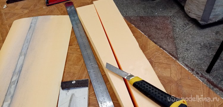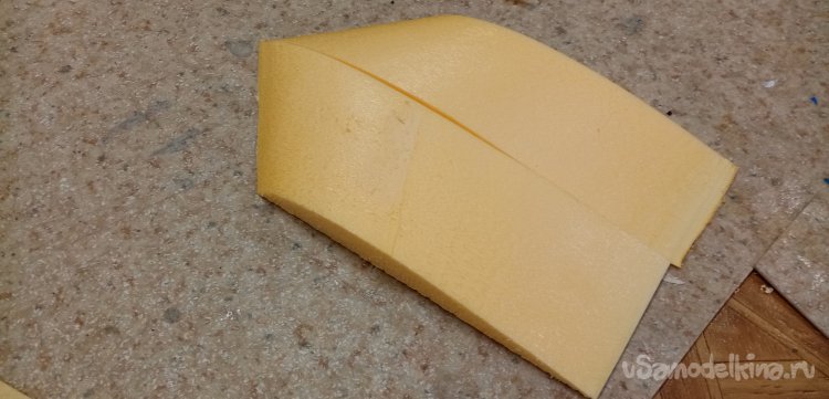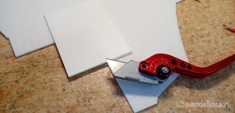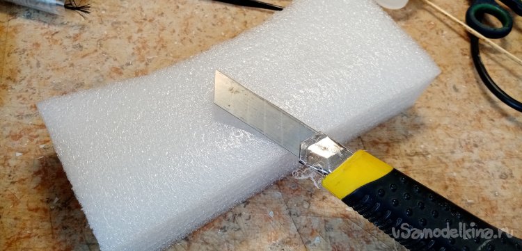 Отрезаю от остатков толстого утеплителя заготовку нужного размера при помощи канцелярского ножа.