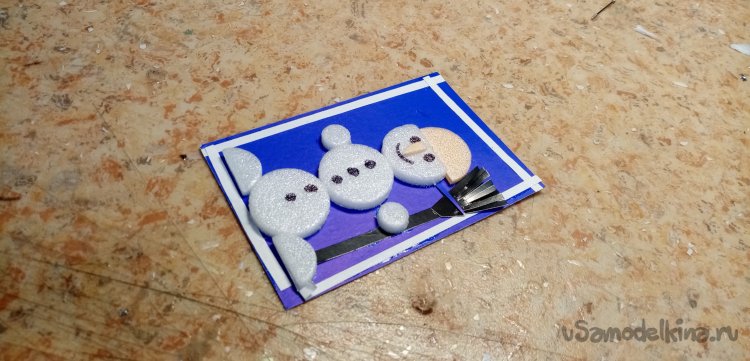 И так небольшая аппликация из бумаги, пенопласта, на тему зимы.