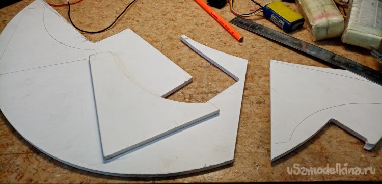 Вырезал основные большие куски по бортам фюзеляжа. Внутренние объемы убрал второй фанеркой со спиралью. Она уже была в моей копилке резалок.