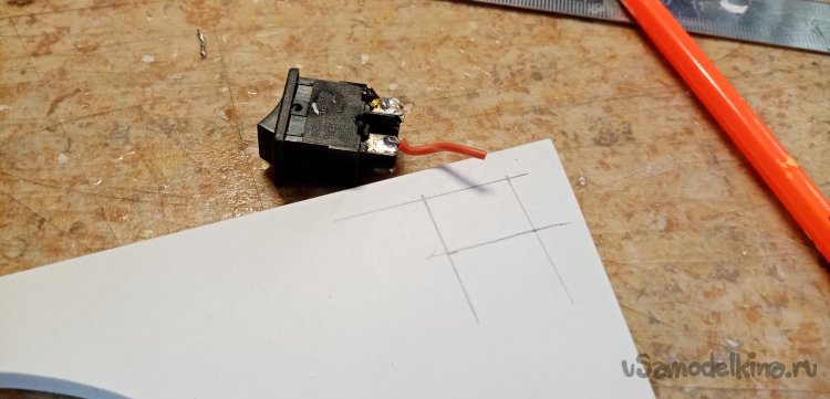 К выключателю приклеиваю разъем питания на подставочку из пластика.
