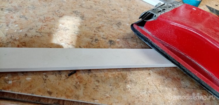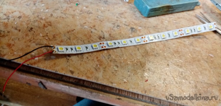 Пришла идея. Поставить внизу конструкции светодиодную ленту белого цвета на 12 вольт. Будет небольшой ночник. Но если просто приклеить её внизу она будет слепить глаза, когда лежу на диване. (Проверено), нужно приклеить для свечения в обратную сторону. Но пластик уже не осталось, поэтому собираю планку из двух частей.