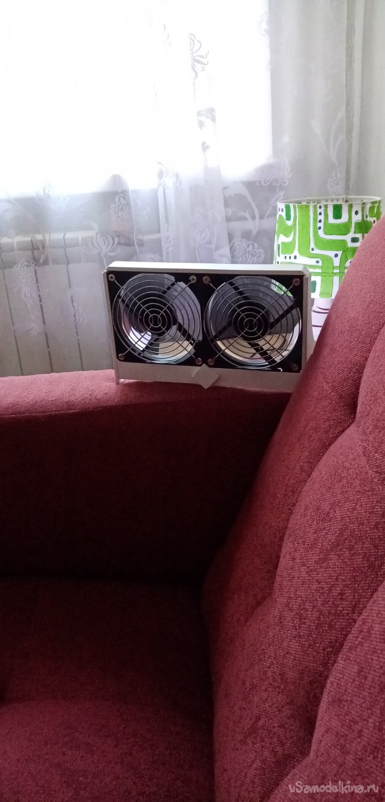 Вентилятор установлен в нужное место и дует аккуратно вдоль дивана, на котором я возлежу.