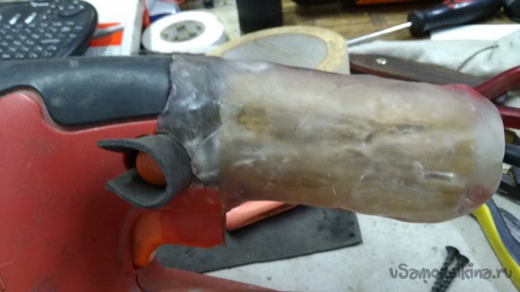 На рукоятке просто рукой продавливаю пластик ещё не застывший, получается рукоятка точно по моей руке.