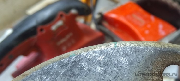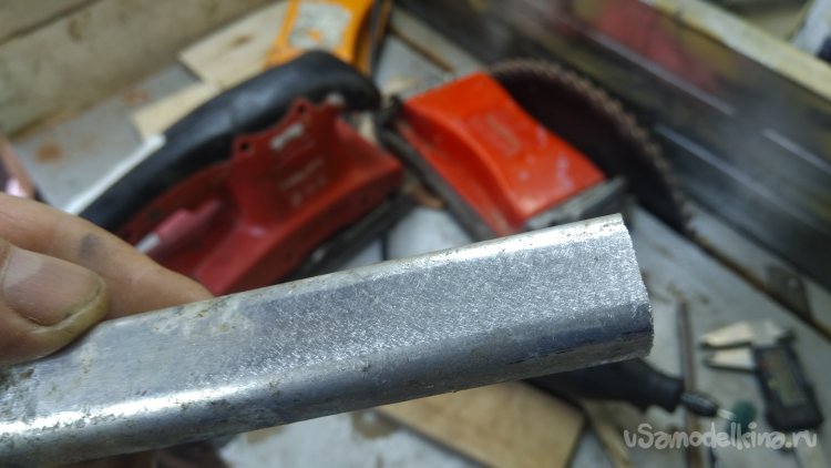 Для дерева она не очень производительна, да и на дереве лучшая шлифовка вдоль волокон. На металле эта машинка оставляет вот такие следы. Идеально под окраску.