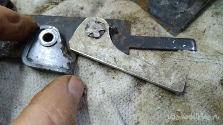 Первый вариант рычага из подвернувшегося под руку кусочка дюрали.