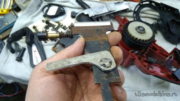 Понадеялся, что короткого куска дюрали хватит для рычага ослабления ленты, но я ошибся. Пришлось делать другой.