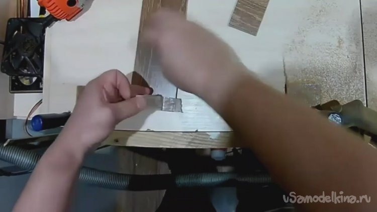 Кстати эти кадры как раз из той самоделки про удлинитель. Способ рабочий для таких небольших деталей из не очень толстого материала., типа ламината и тонкого МДФ.