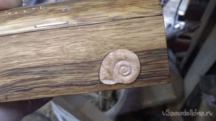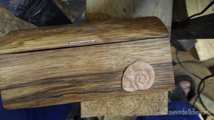 Сначала-то я вообще думал что-то типа морской травы или кораллов, гидру какую-нибудь там посадить. Но ограничился лаконичной улиточкой. Наверное, её можно было ещё меньше сделать, но уже и текстуру дерева разглядеть трудно, мелкая ведь штучка.