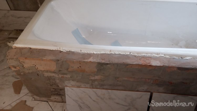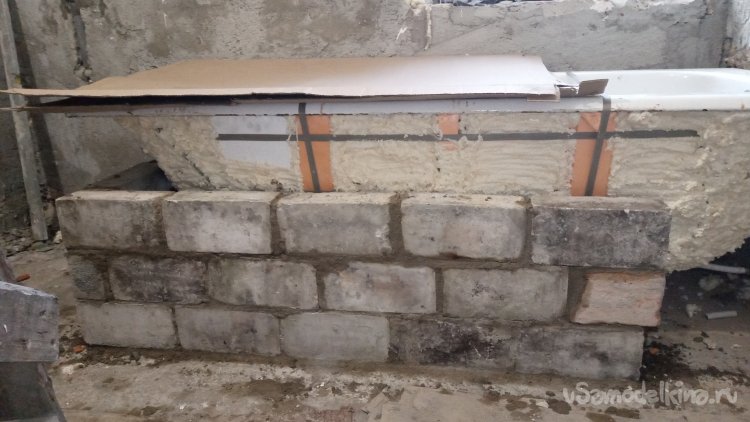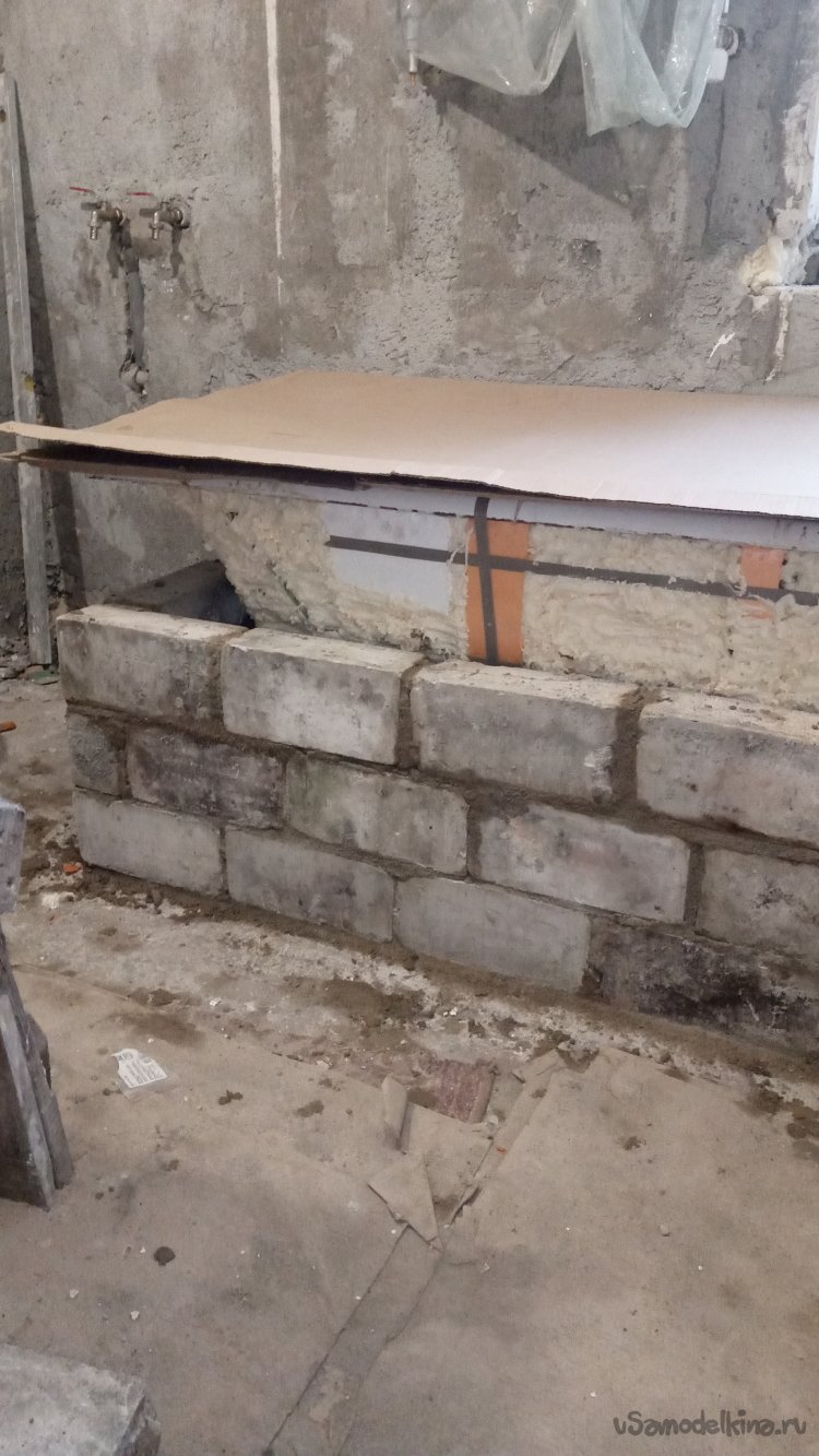 А пока можно обкладывать ванну кирпичом... У меня был бывший в употреблении, оставшийся после демонтажа печей и пробивки дверных проёмов. Вот, заодно и от мусора избавлюсь с пользой!))))