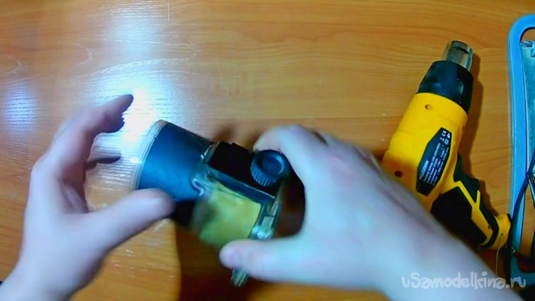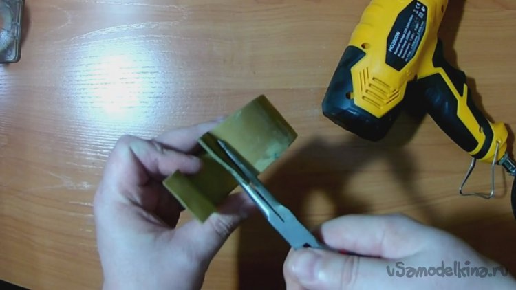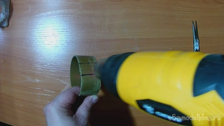 Возьмём строительный фен и прогреем те части заготовки, которые нужно отогнуть. Сначала с одной стороны пропила.