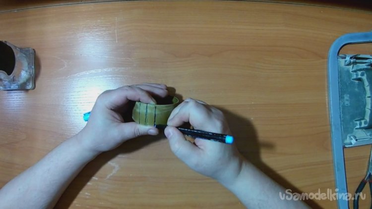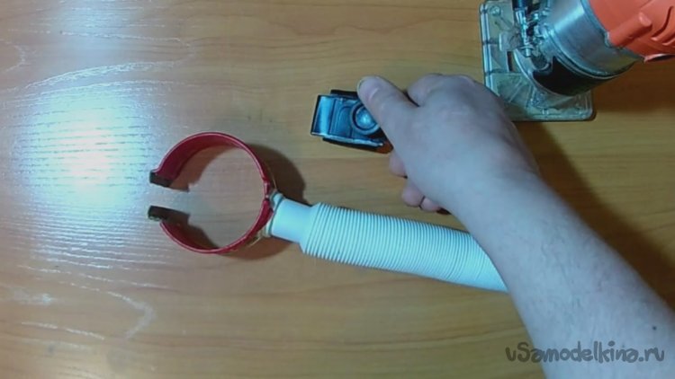 Теперь надо надо сделать пропил, чтобы как бы из трубы сделать хомут, размечаем и пилим нашу заготовку.