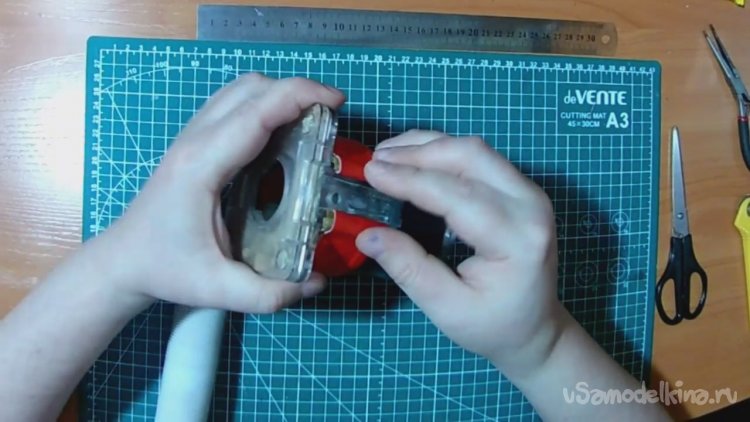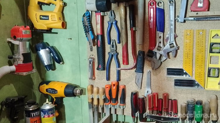 Ножовка по металлу, строительный фен, длинногубцы, шуруповёрт, ступенчатое сверло, сифон сантехнический, стакан пластиковый, пластик, экокожа, клей, нож, жесть...