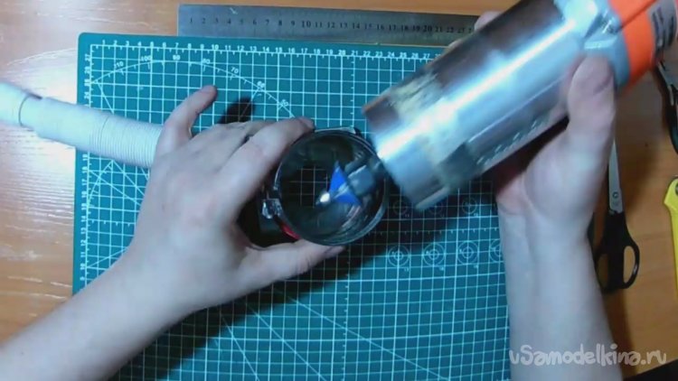 Внутреннюю часть кое как заклеил, наступил черед наружной части нашей самодельной пылеуловительной системы.