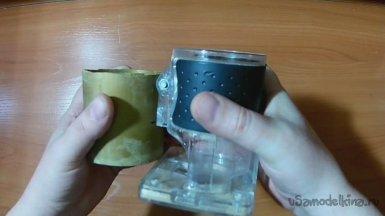 Немного предыстории. Купил себе на распродаже в Алиэкспрессе такой кромочный фрезер, за сущие копейки (15$). Думал очередное китайское фуфло, отработает пару месяце и сдохнет, но не тут то было. Этот малыш трудится уже третий год и ему хоть бы хны. Хотя я и не очень часто им пользуюсь, но когда пользуюсь, он приносит мне массу положительных эмоций. Так вот, есть у него одна значительная, а может и не очень значительная проблема, когда им работаешь то вокруг пыль столбом стоит, а у меня наверное как вы знаете мастерская очень маленькая (4 кв.м). Так что решил смастерить для него пыльник или пылеулавливающую насадку. Будем мастерить насадку-пылеуловитель из материалов, которые наверняка найдутся у каждого.