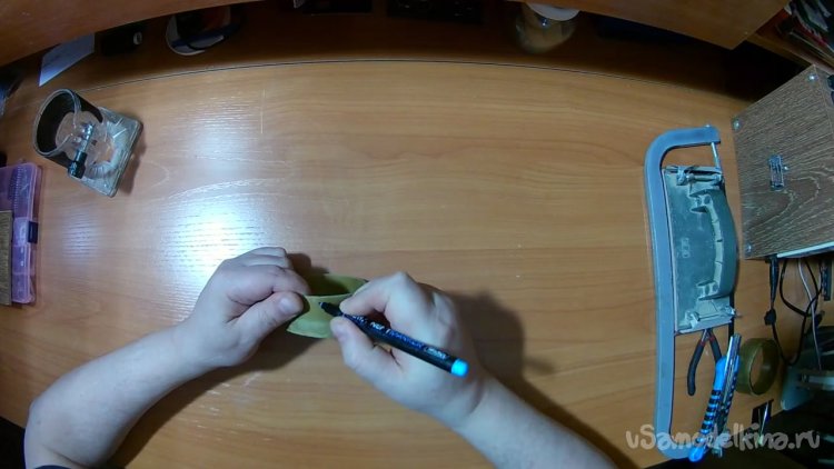 Снимаем заготовку с платформы и прорисовываем линии сгибов на ней.
