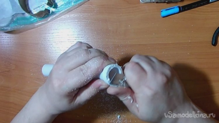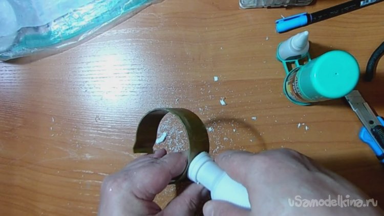 И сточил торец трубки полукругом, для более плотного прилегания заготовок друг к другу при склеивании.