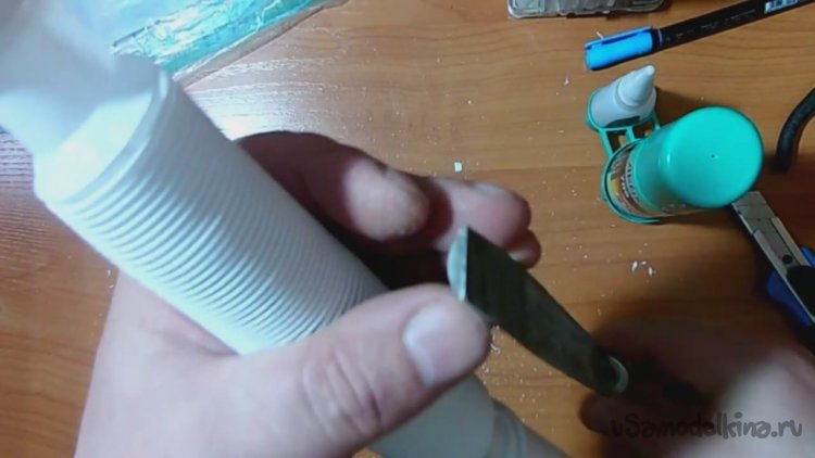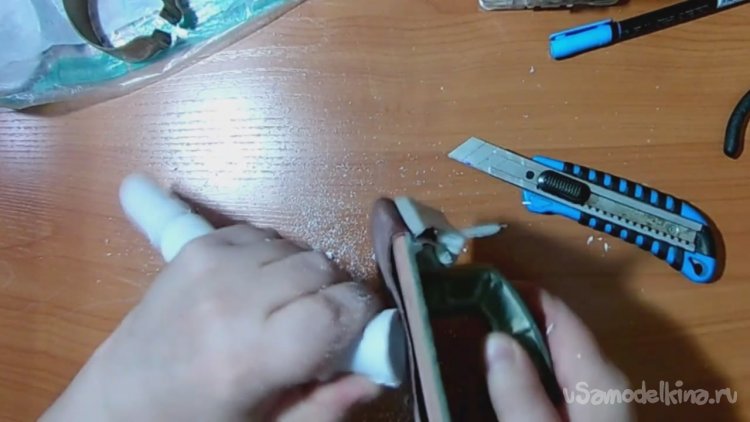 Затем с помощью канцелярского ножа срезал все неровности и заусенцы.