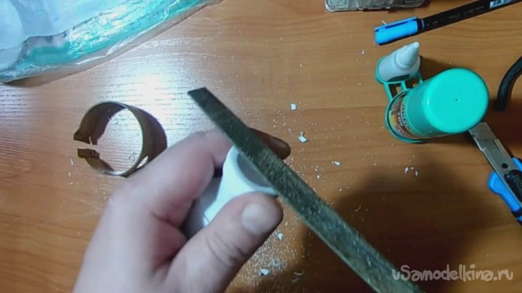 Канцелярским ножом убрал заусенцы и неровности, оставшиеся после распила.
