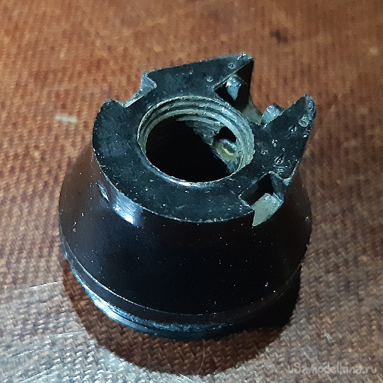 Патрон выдерживает высокие температуры т.к. сделан из эбонита. С отпиленным рожком и вкрученным в патрон, выглядит так: