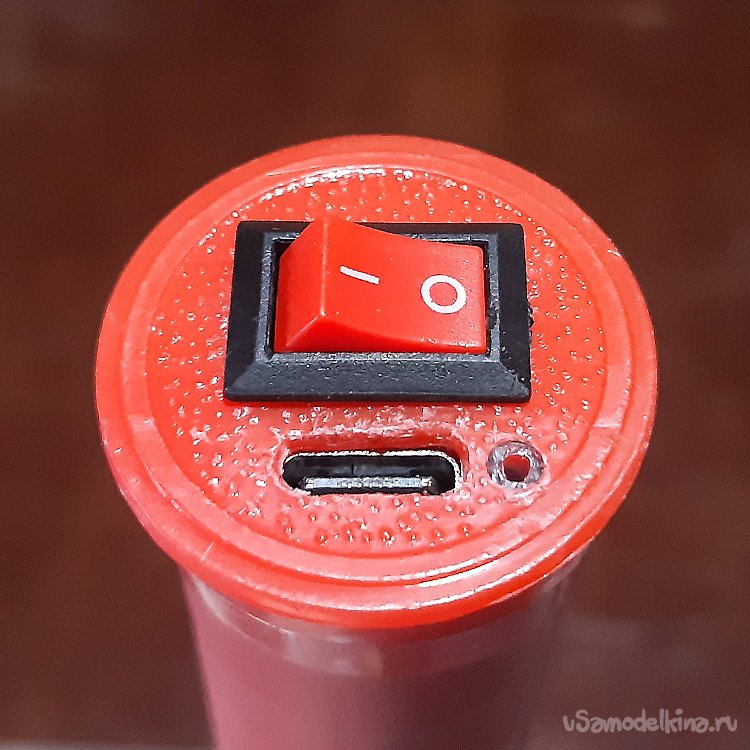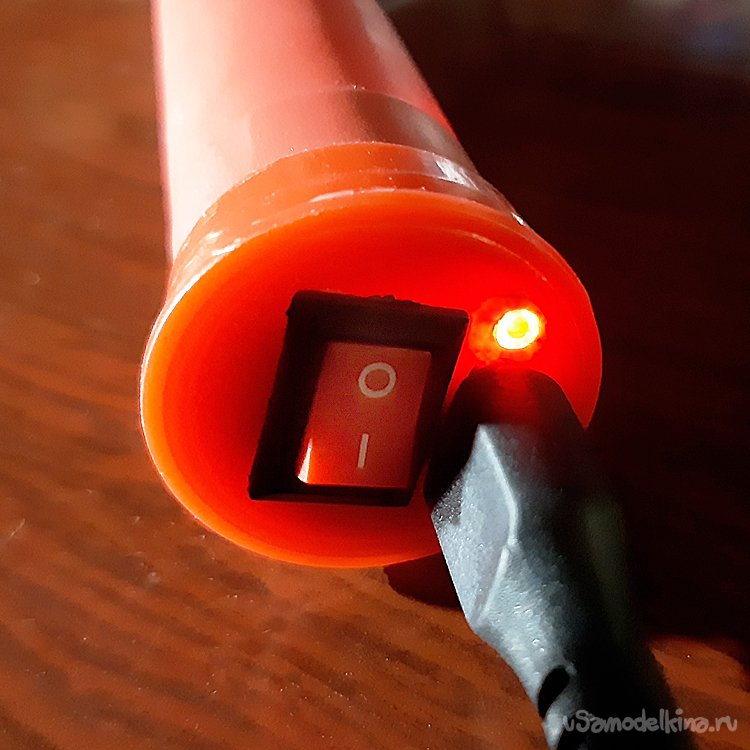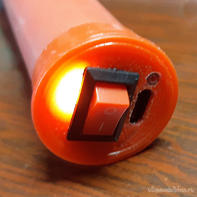 В отпиленном рожке сделал прорези дремелем, для отвода тепла. Медное жало меньше диаметром, чем рожок (трубка),поэтому в качестве уплотнителя использовал расплющенную алюминиевую проволоку. В крышку от индийской "Холодной сварки" врезал выключатель и контроллер заряда.