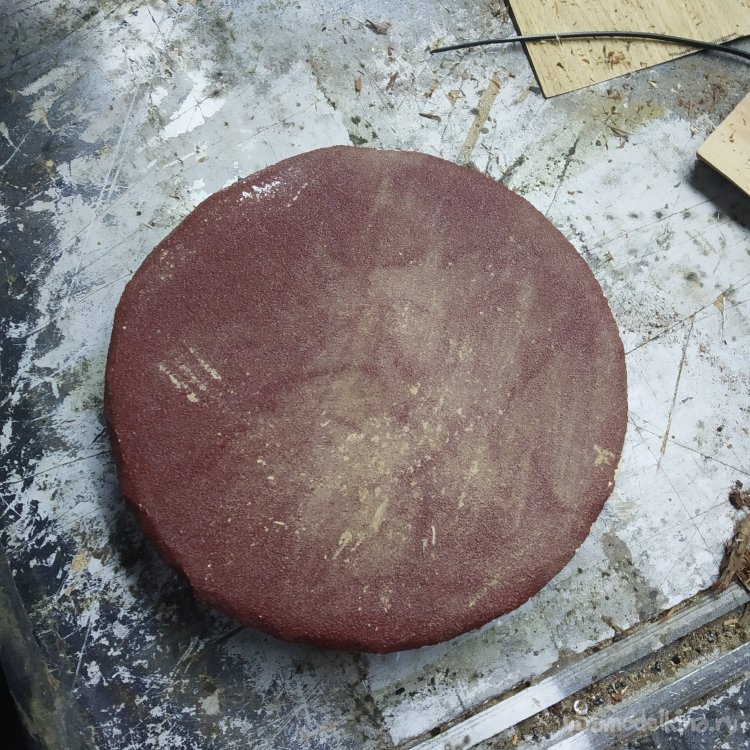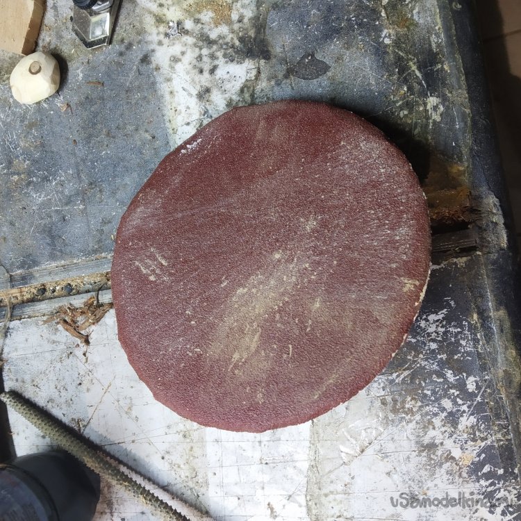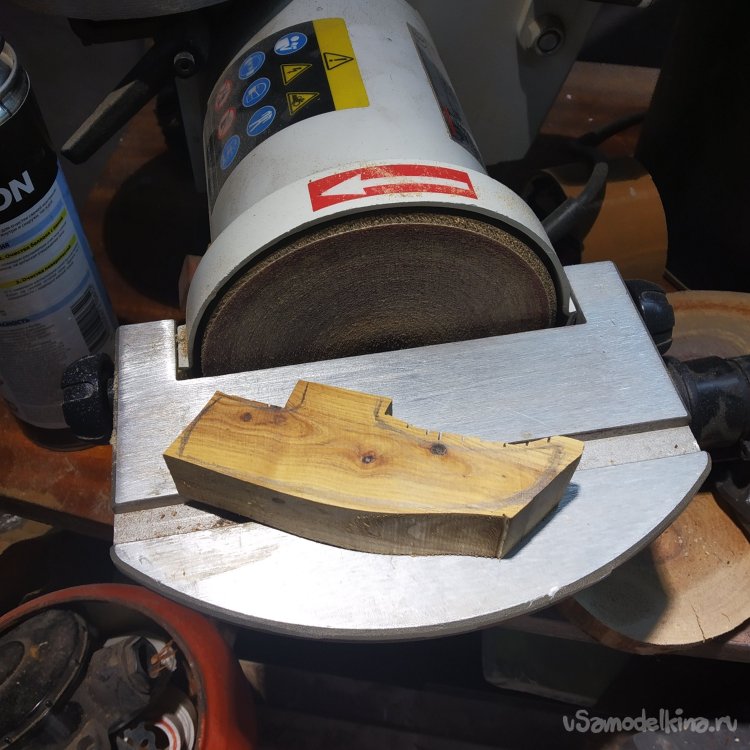 Теперь ручная шлифовка. Сначала, как всегда – шлифовальный круг 100 абразивности. Им я прохожусь только вдоль волокон, чтобы выровнять поверхность и упростить дальнейшую шлифовку.