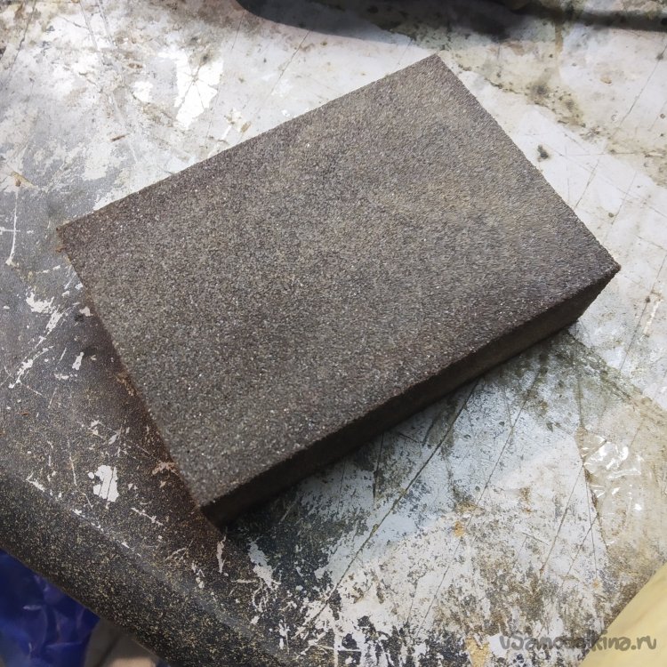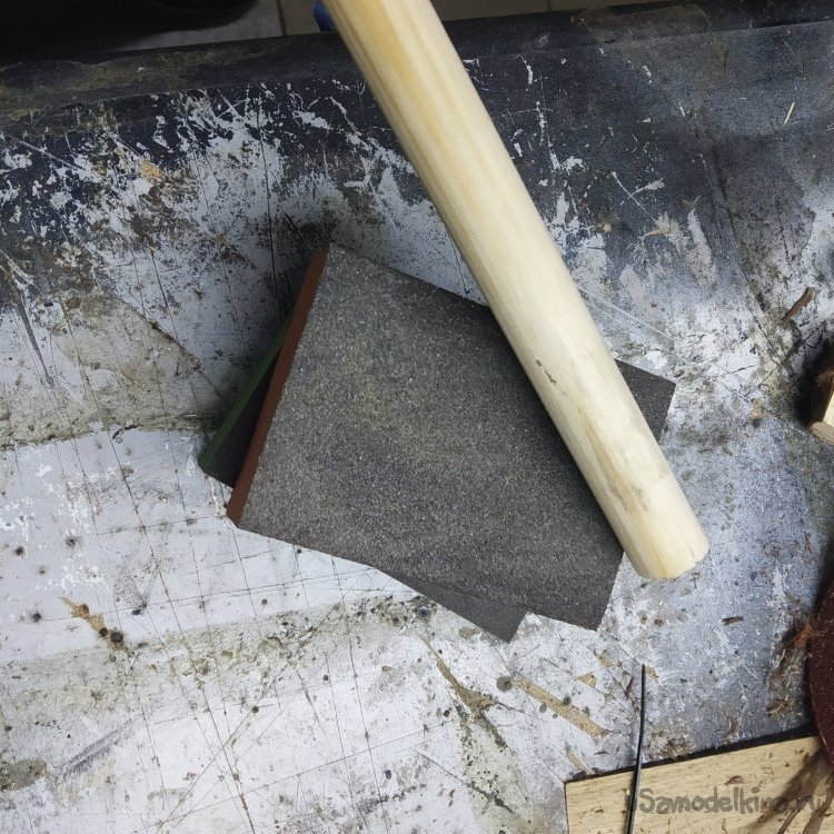 Для начала эту палку нужно отшлифовать, чтобы избавиться от следов производства. Эту манипуляцию я проводил с помощью шлифовального круга на плотной губчатой основе и абразивных губок.