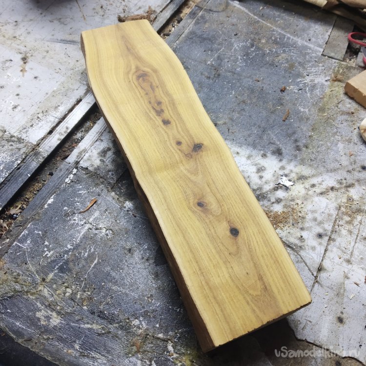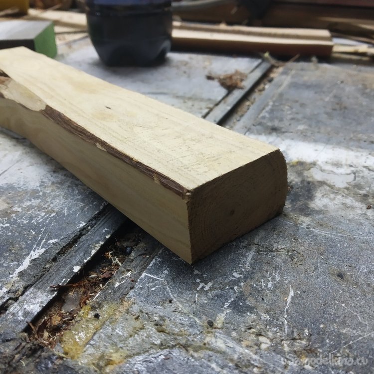 Сначала я решил изготовить шкант. Шкант я решил изготовить из яблони, потому что хорошая дощечка ее валялась рядом, с которой можно его и отпилить. Но получилась квадратная палочка, а нужна круглая.