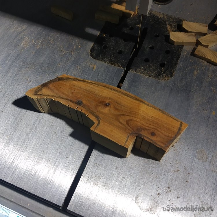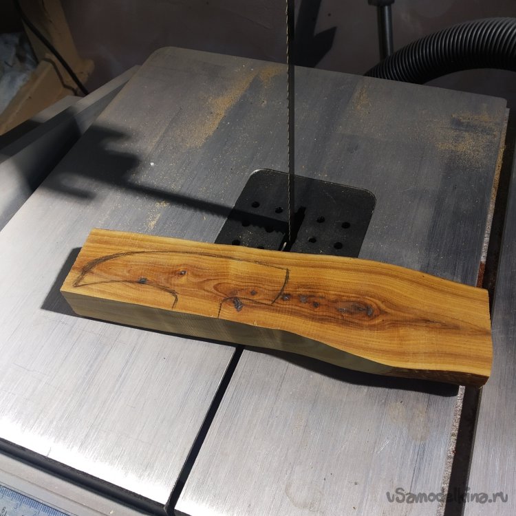 Далее можно выпилить заготовку ножовкой или выдолбить стамеской, но, как я не раз отмечаю, я ленивый буржуй и вручную только шлифую. И то не факт. Так что я выпилил заготовку на ленточнопильном станке.