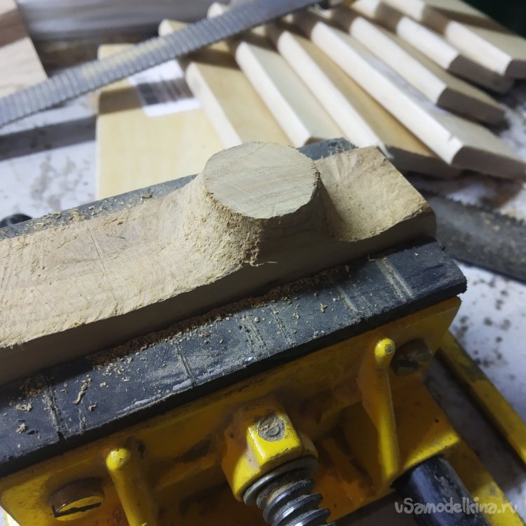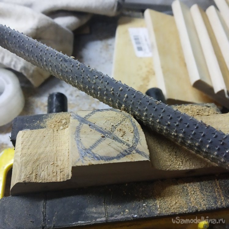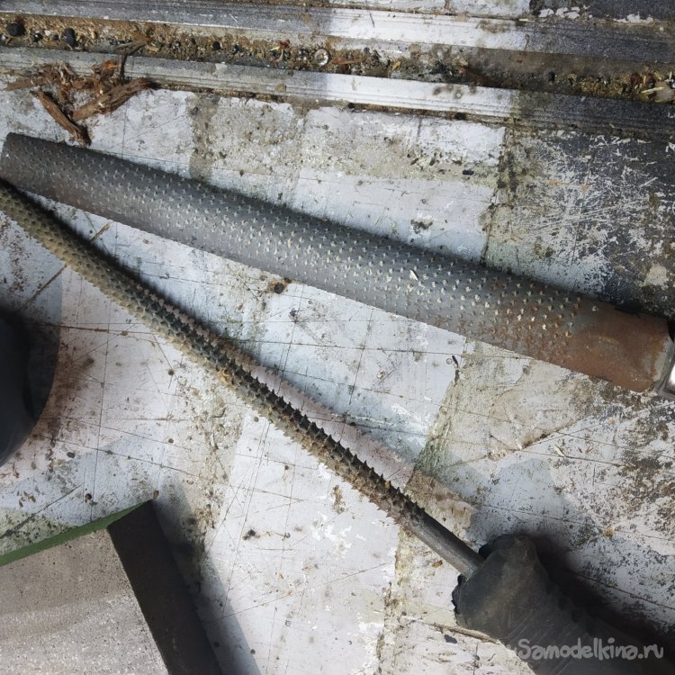Так что зажимаю заготовку в тиски и ищу рашпили. С рашпилями у меня отдельные отношения, потому что я их не люблю. Не люблю конкретно эти, потому что тупые, а других особо нет. Ну, круглый обдирает нормально, ладно. Ну и конечно трудно убирать следы от рашпиля потом.