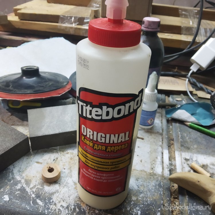 Склейку проводил на клей Тайтбонд 1 номер не потому, что это хороший, хоть и не любящий влагу клей, а потому что другого не было. А цианоакрилат тут не поможет, так как вероятны ударные нагрузки, а это не шкатулка, которая будет стоять на полке для красоты.