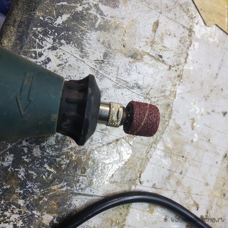 Теперь нужно сравнять в один уровень рукоять трости, проставку и тело. Это я сделал гравером со шлифовальной насадкой.