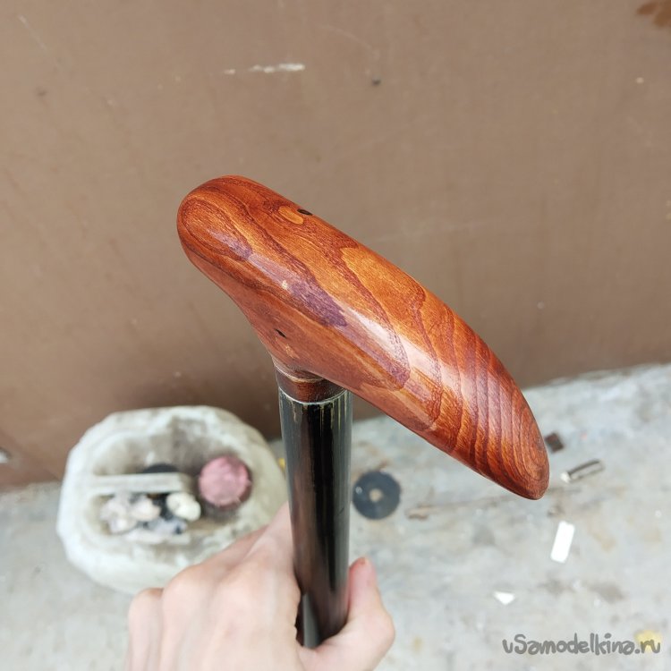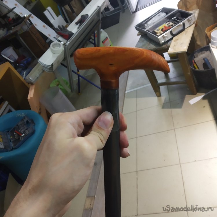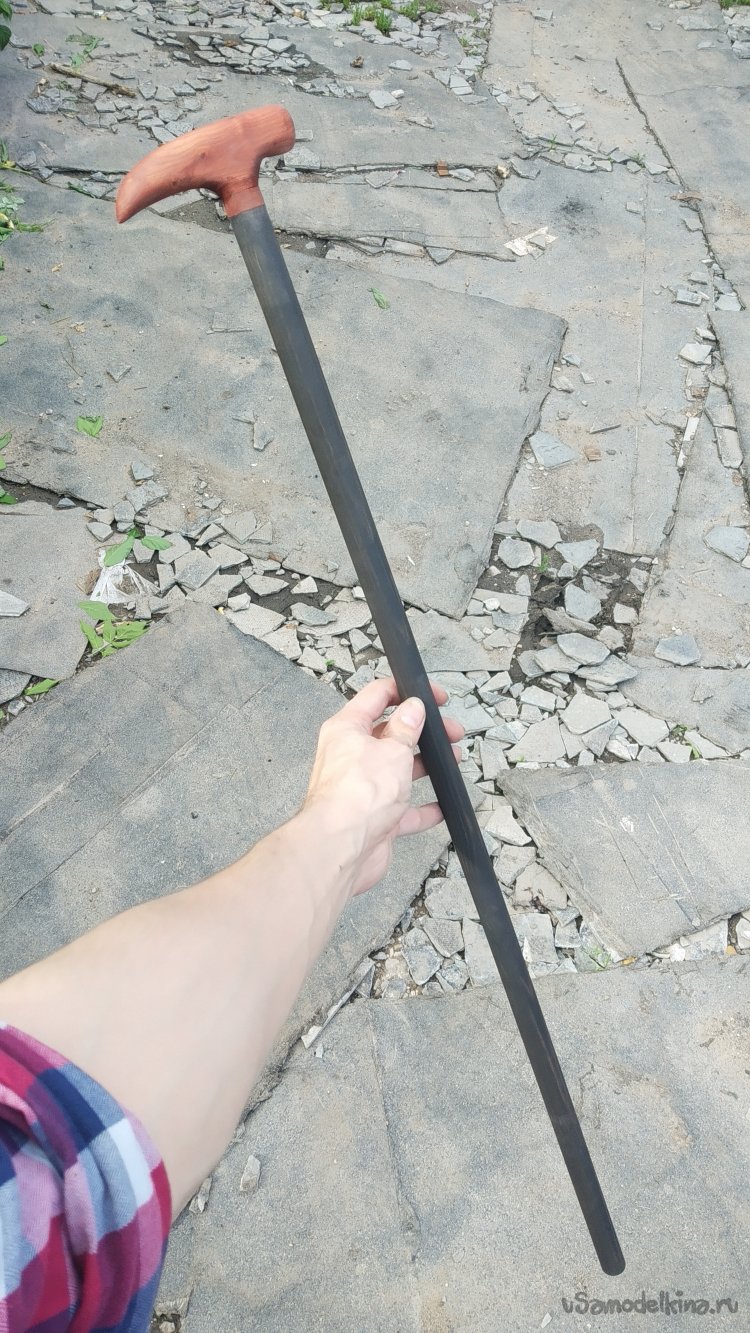 И вот, трость готова. Несколько дней, куча геморроя и осознание того, что это эксперимент по приколу. Но результат превзошел все ожидания, а ожидал я, что вообще ничего не получится. Но... что-то получилось. Трость я уже подрезал под рост, можно щеголять. Хотя я с тростью-то и не хожу, пока в гараже тусует.