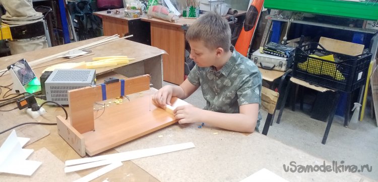 Оставляем крыло на сутки для качественной приклейки. Лучше рассчитать время изготовления и закончить работы к концу рабочего дня. Мы умудрились изготовить два крыла в период с 10 часов утра и до 14 дня, к концу занятий.